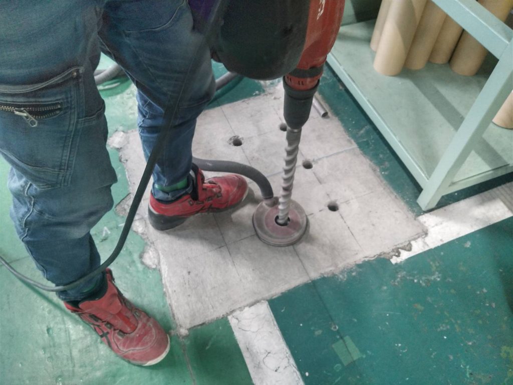 静岡県菊川市にて、工場内に鉄骨柱を建てるためのアンカー工事を行いました。