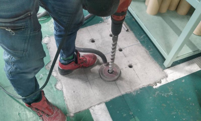 静岡県菊川市にて、工場内に鉄骨柱を建てるためのアンカー工事を行いました。